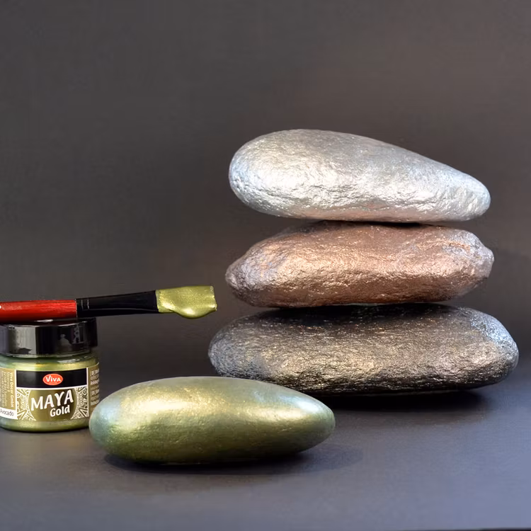 Borsta gärna på Maya Gold på en redan akrylmålad yta, exempelvis svart, vilket ger en extra fin effekt.