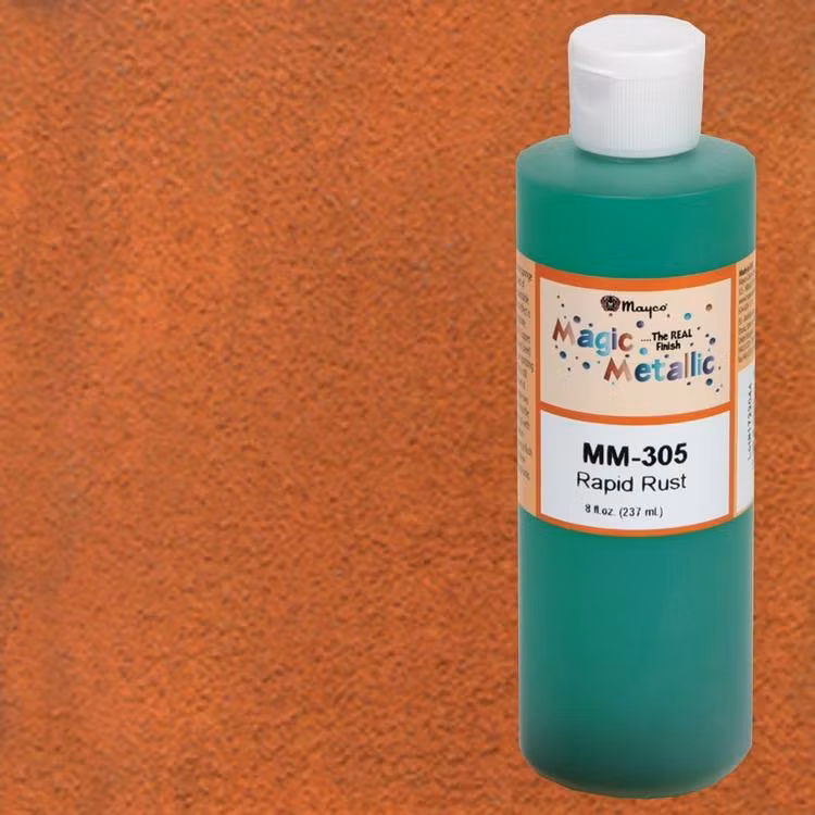 Magic Metallics kan användas separat eller tillsammans med Patina och Rapid Rust (oxideringsmedel) med vilka du kan skapa vackra ärgade och rostiga ytor på bara någon timme, som det annars tar naturen flera år att få fram.